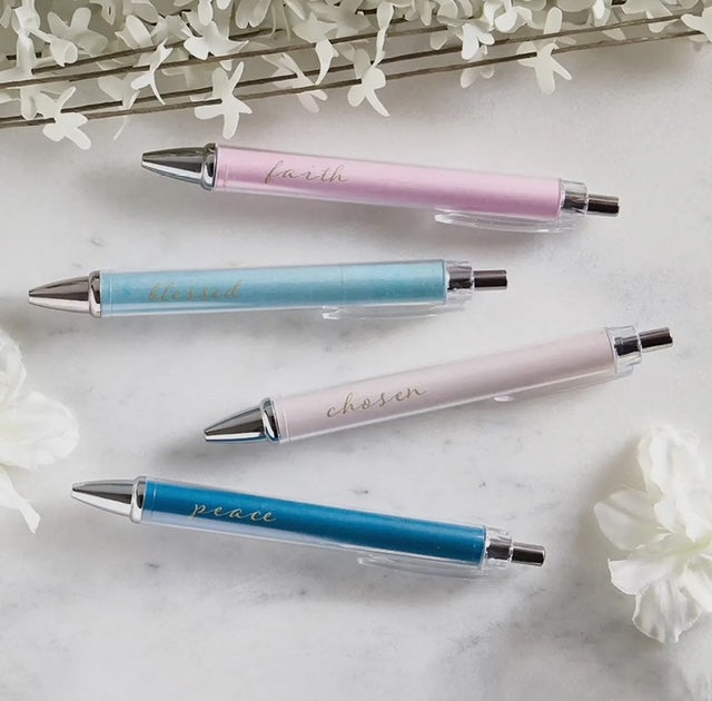 - Set of 4 pastel pens, each with a unique biblical affirmation