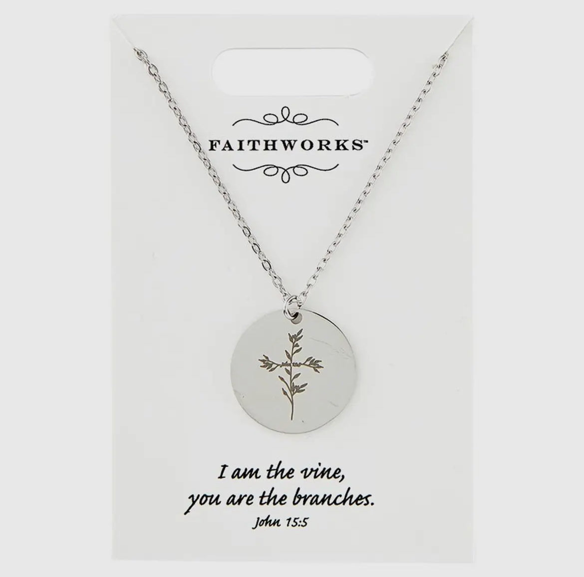 Embrace connection and growth with our Circle Vine Silver Necklace. This elegant piece features a round silver pendant engraved with a delicate vine design, inspired by the words of John 15:5: “I am the vine, you are the branches.” It’s a beautiful daily reminder that we are rooted in faith and supported by a greater purpose.