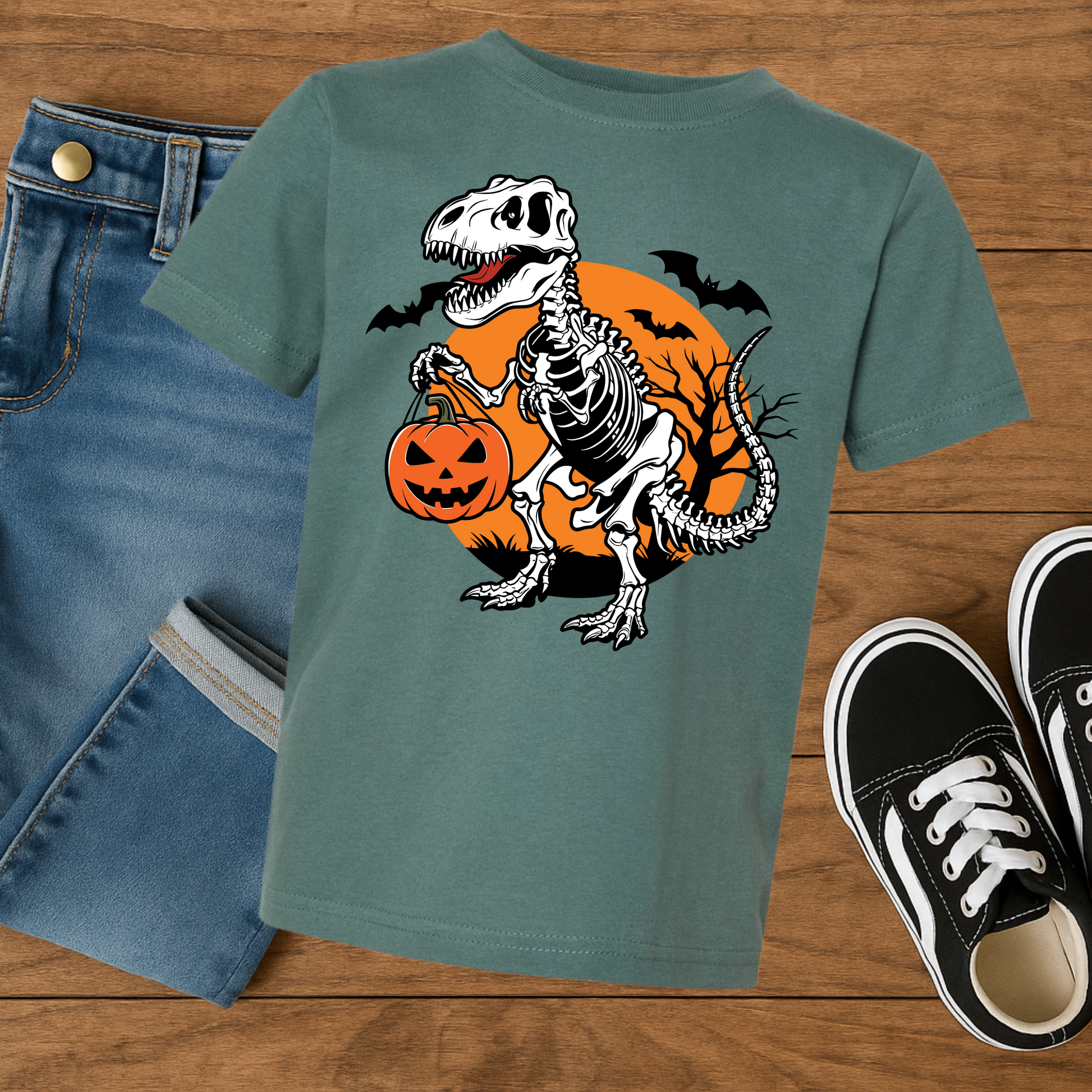 This tee is a must-have for dino fans who love spooky fun and Halloween adventures!