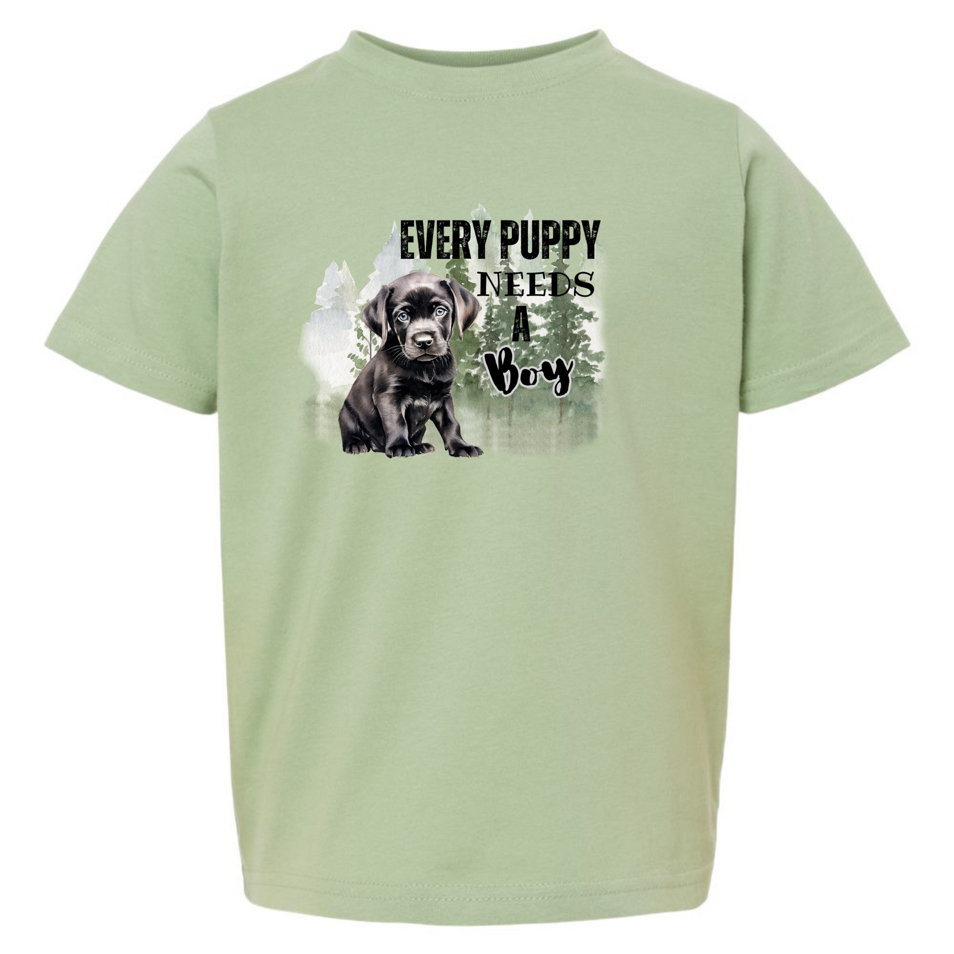 Is there anything sweeter than a boy and his pup? 🐶💚 This Every Puppy Needs a Boy graphic tee is made for the little dog lovers who share their snacks, secrets, and snuggles with their furry best friend.