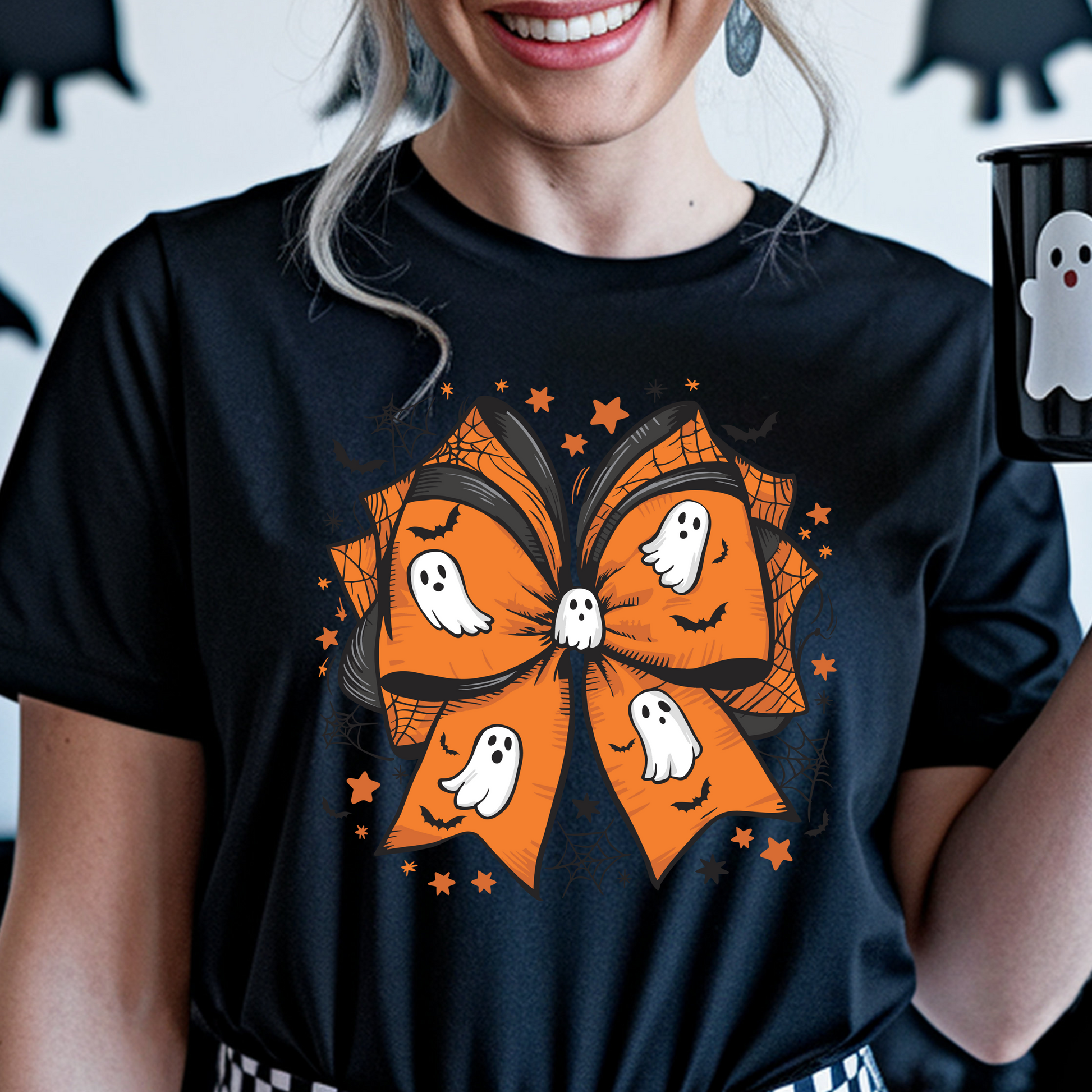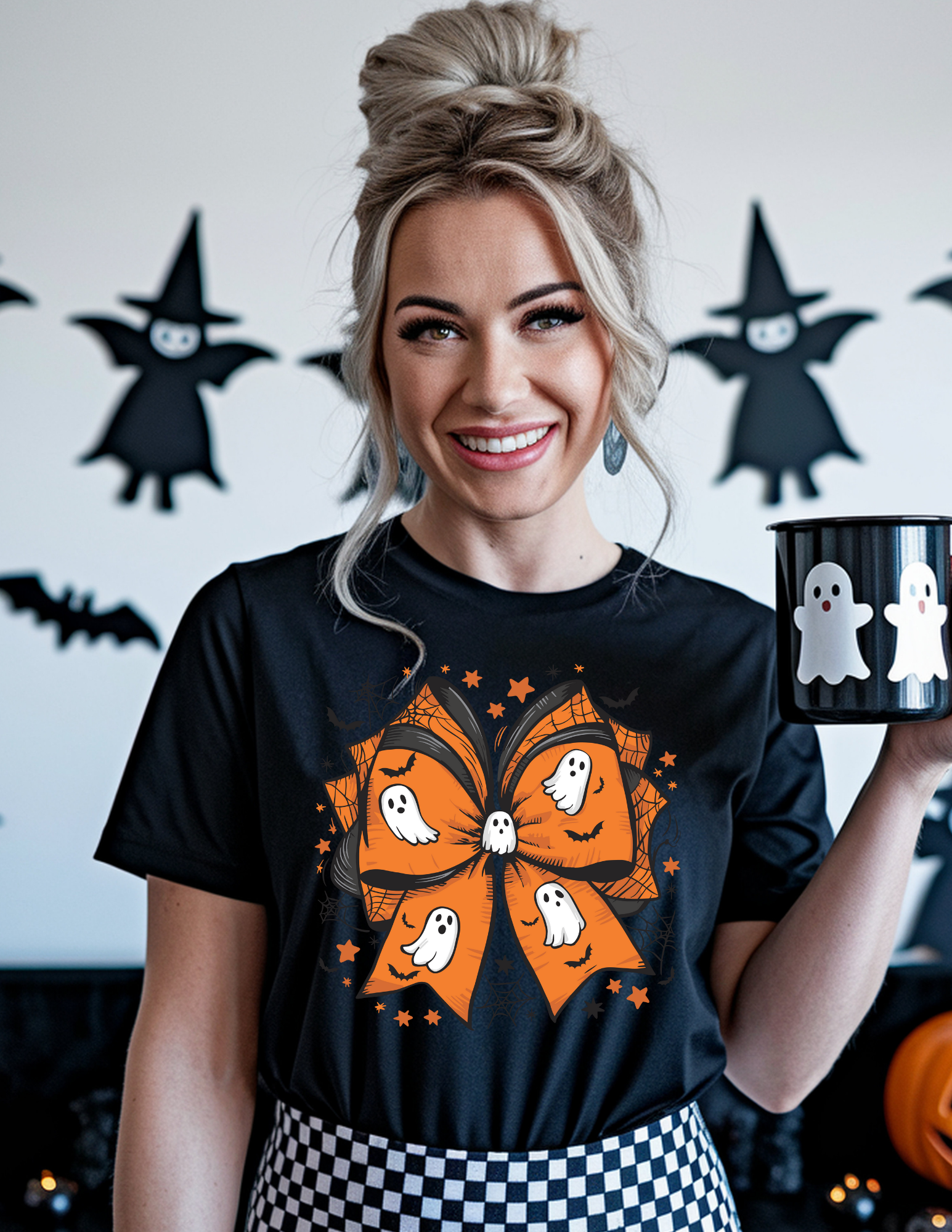 “Ghost Bow” Graphic Tee – Cute Halloween Bow & Ghost Shirt