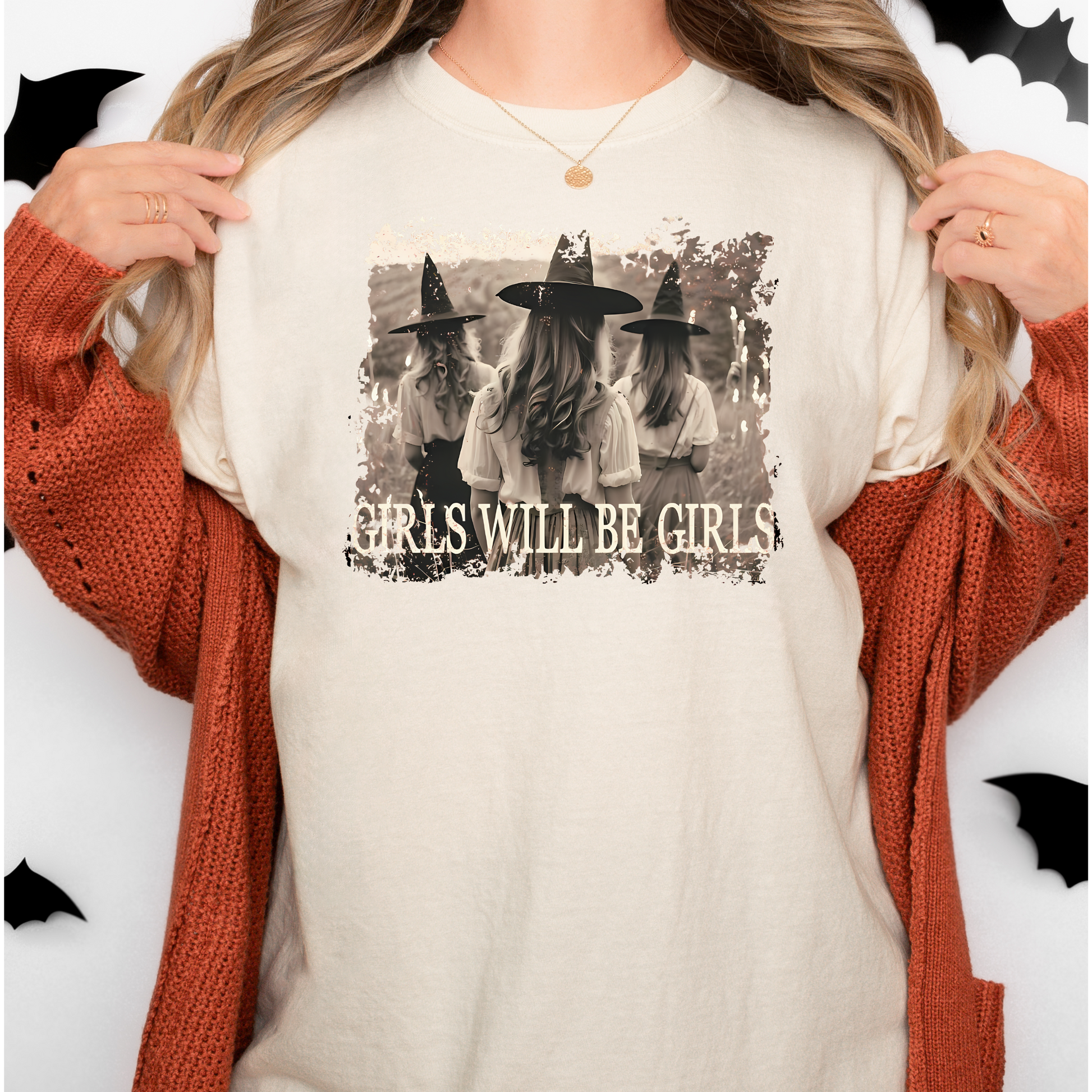 Girls Will Be Girls Halloween Graphic Tee – Witchy Retro Aesthetic Shirt