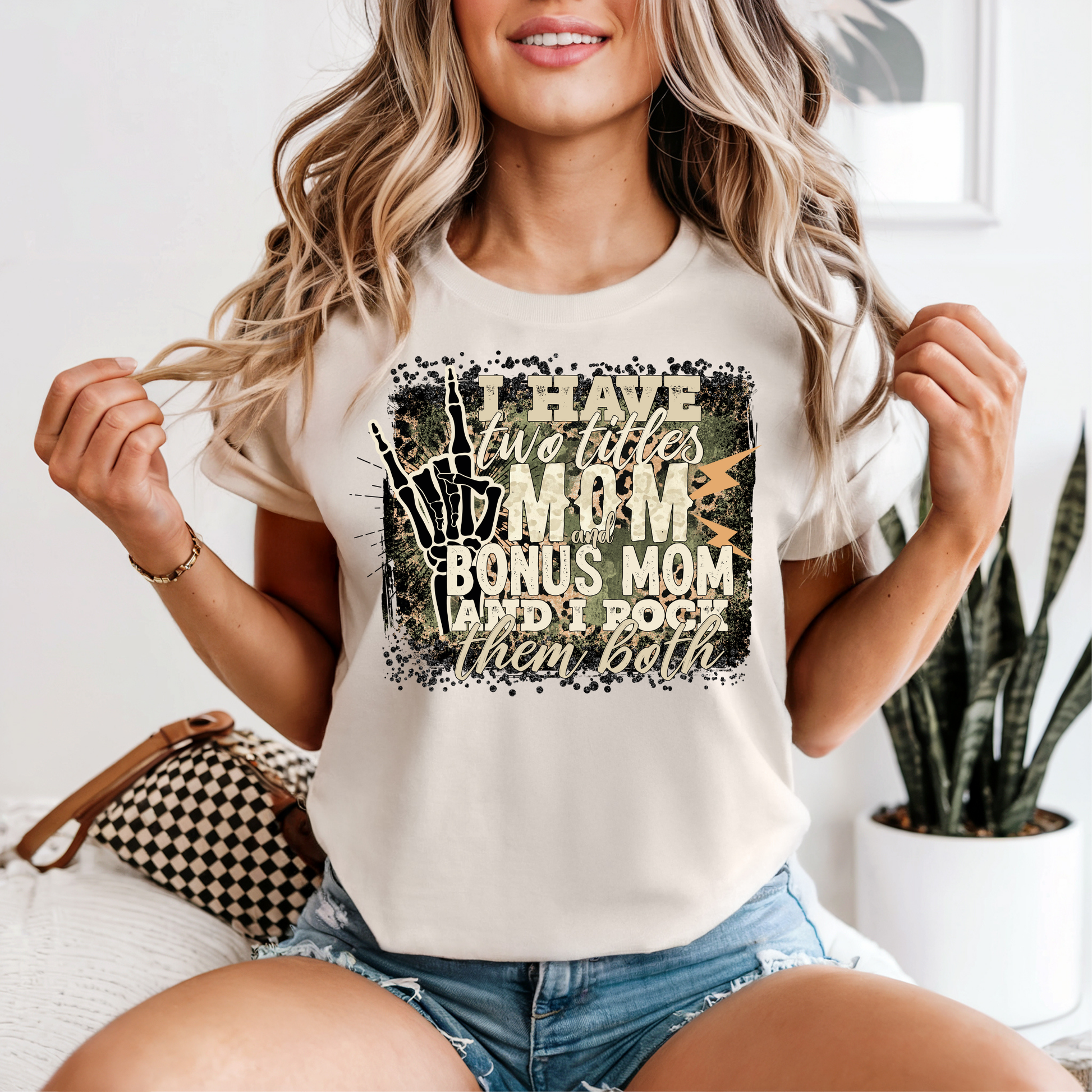 Stepmom? Bonus mom? Bio mom? Why choose? You’re rocking both titles and this tee says it loud and proud! With a distressed grunge-style design, hand-flashing skeleton fingers, camo star accent, and bold lettering, this shirt is for the mama who wears multiple hats and still shows up with love and style.