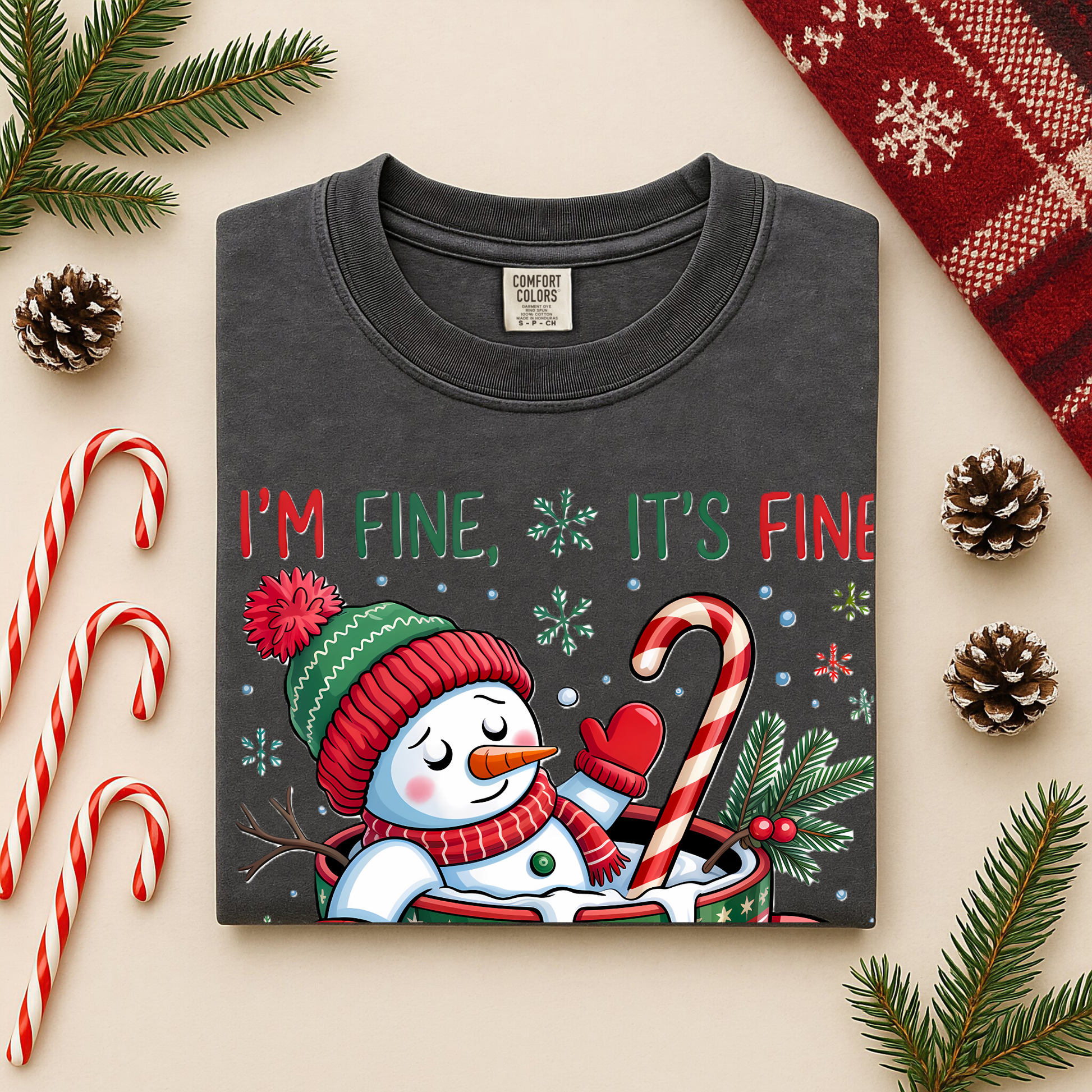 I'm Fine It's Fine Just Having A Meltdown Comfort Colors Long Sleeve – Funny Christmas Snowman Tee