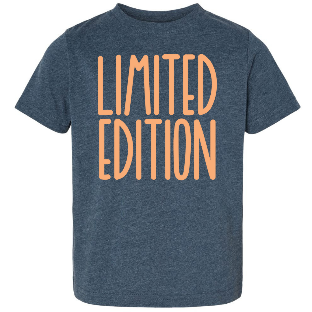 Because your kid isn’t just any kid—they’re a limited edition. This graphic tee says it loud and proud with playful peach-colored lettering on a comfy deep navy Rabbit Skins® shirt. It's made for the originals, the trendsetters, and the tiny humans who bring BIG personality wherever they go.