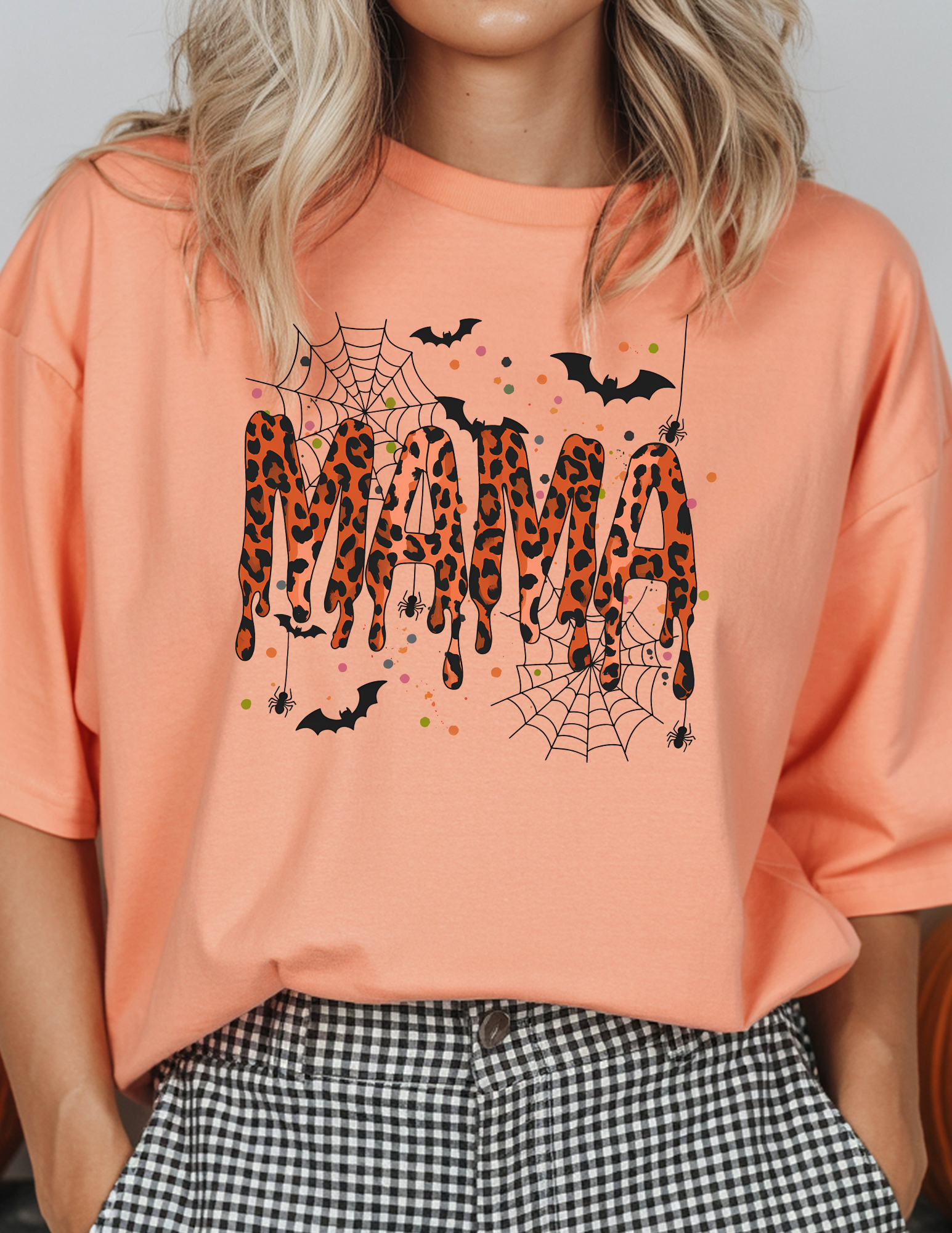 “Mama” Leopard Print Halloween Graphic Tee – Spooky Season Mom Shirt