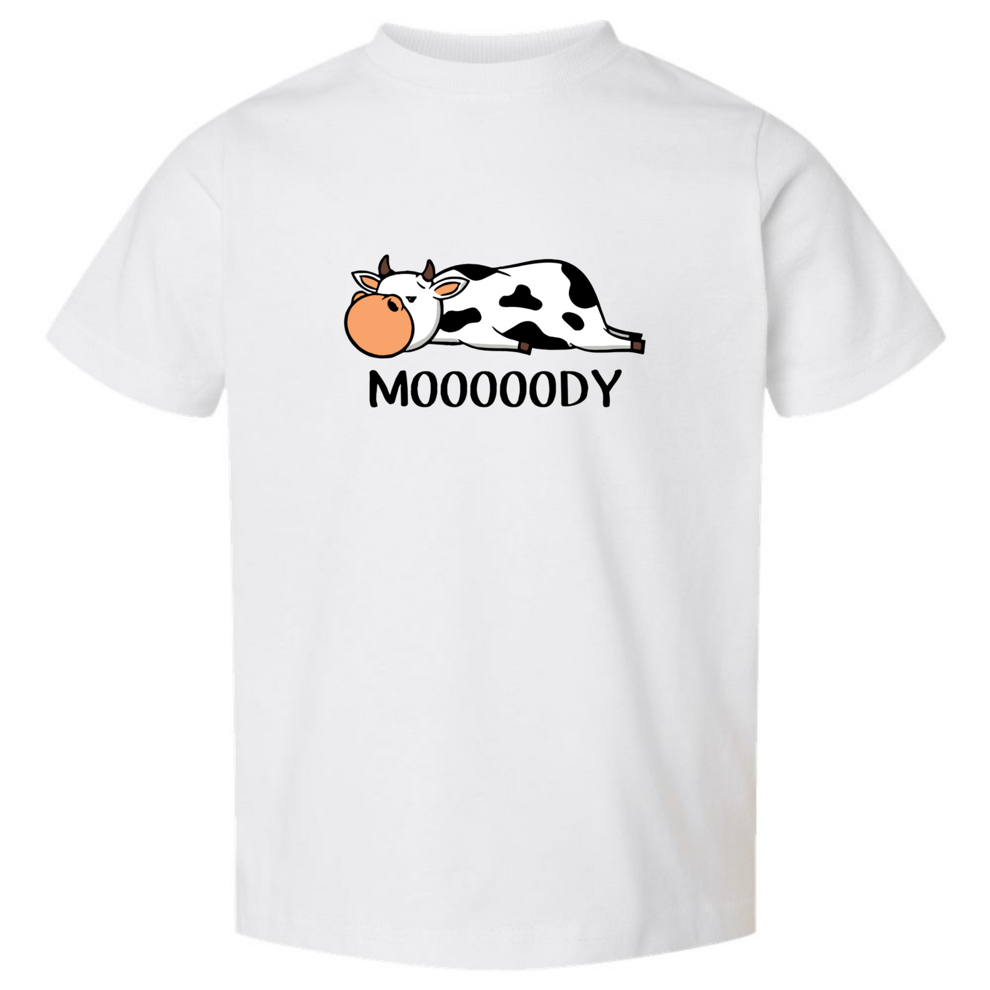 Moo-ve over boring tees—this one’s got all the attitude. Our “Moooody” tee brings the sass and smiles with a lazy cartoon cow that’s totally relatable. Printed on a soft Rabbit Skins white shirt, it’s perfect for little ones who feel cute and a little cranky.