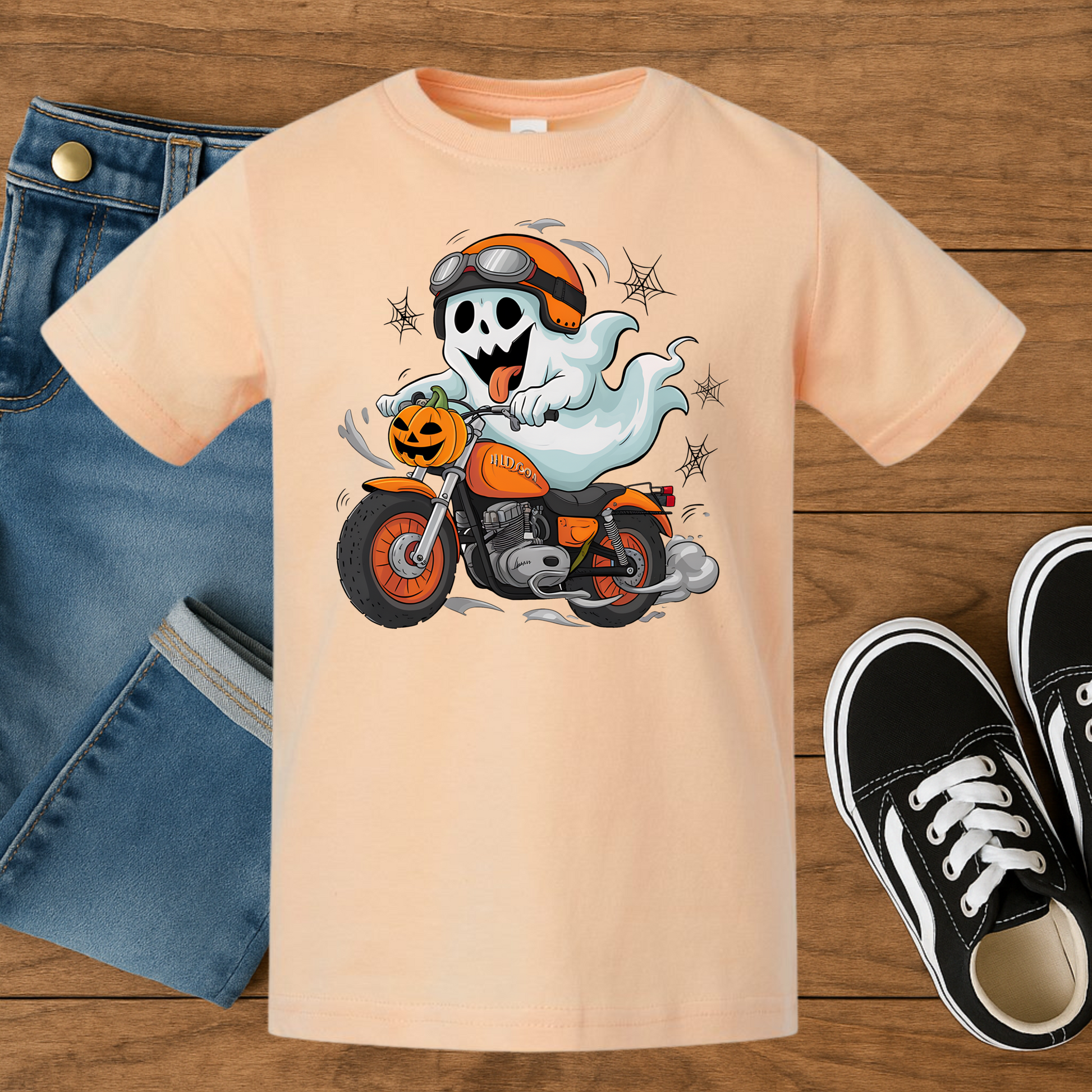“Motorcycle Ghost Rider” Kids Halloween Tee – Spooky Biker Ghost Shirt