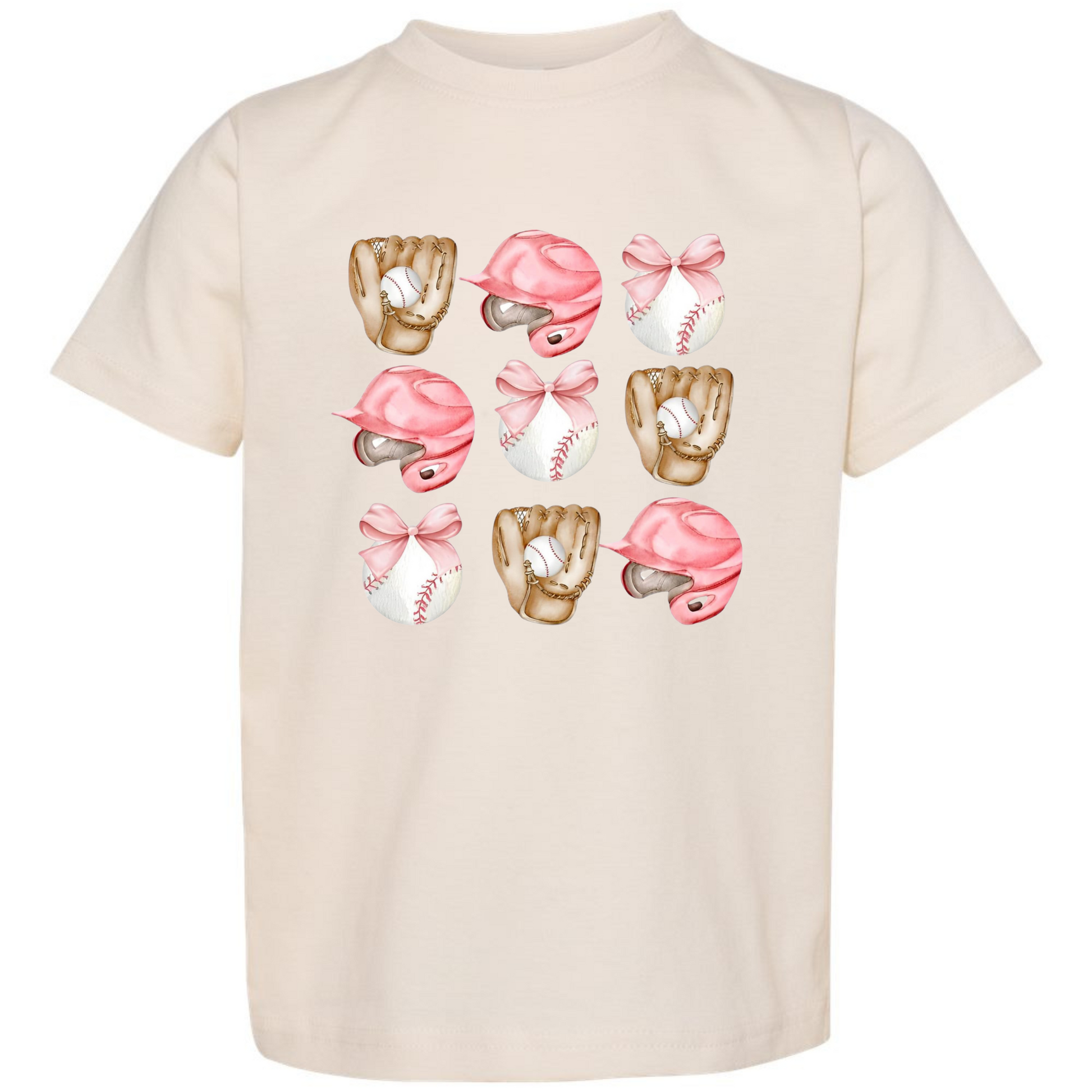 Game day glam is here! This adorable tee features a stylish grid of pink softball helmets, bows, and gloves – the ultimate blend of sporty and sweet. Perfect for your little softball-loving queen who brings sparkle and hustle to the diamond. Made on soft Rabbit Skins cotton, it’s cute and comfy.