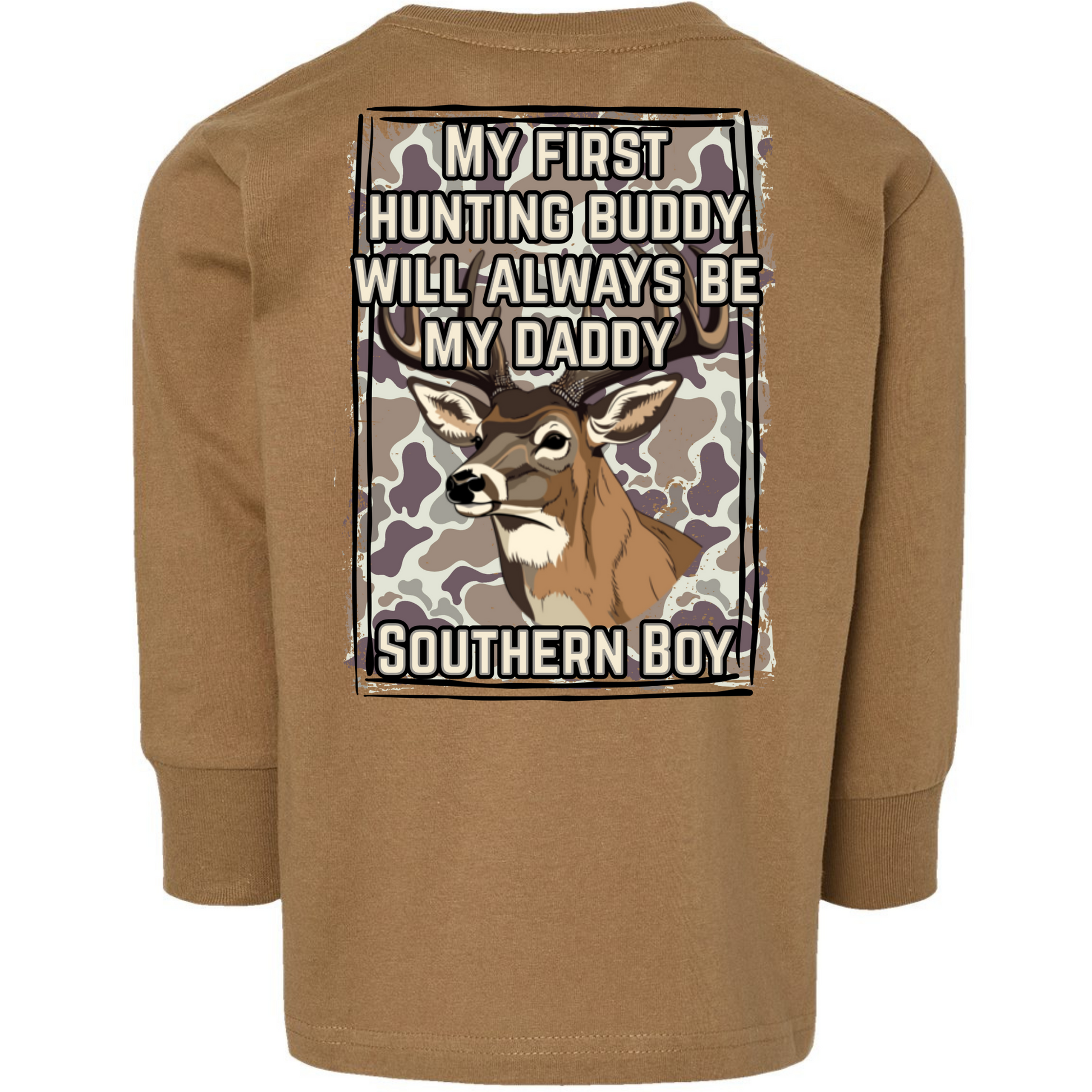 Southern Boy Hunting Buddy Kids Long Sleeve Tee (Back Design)