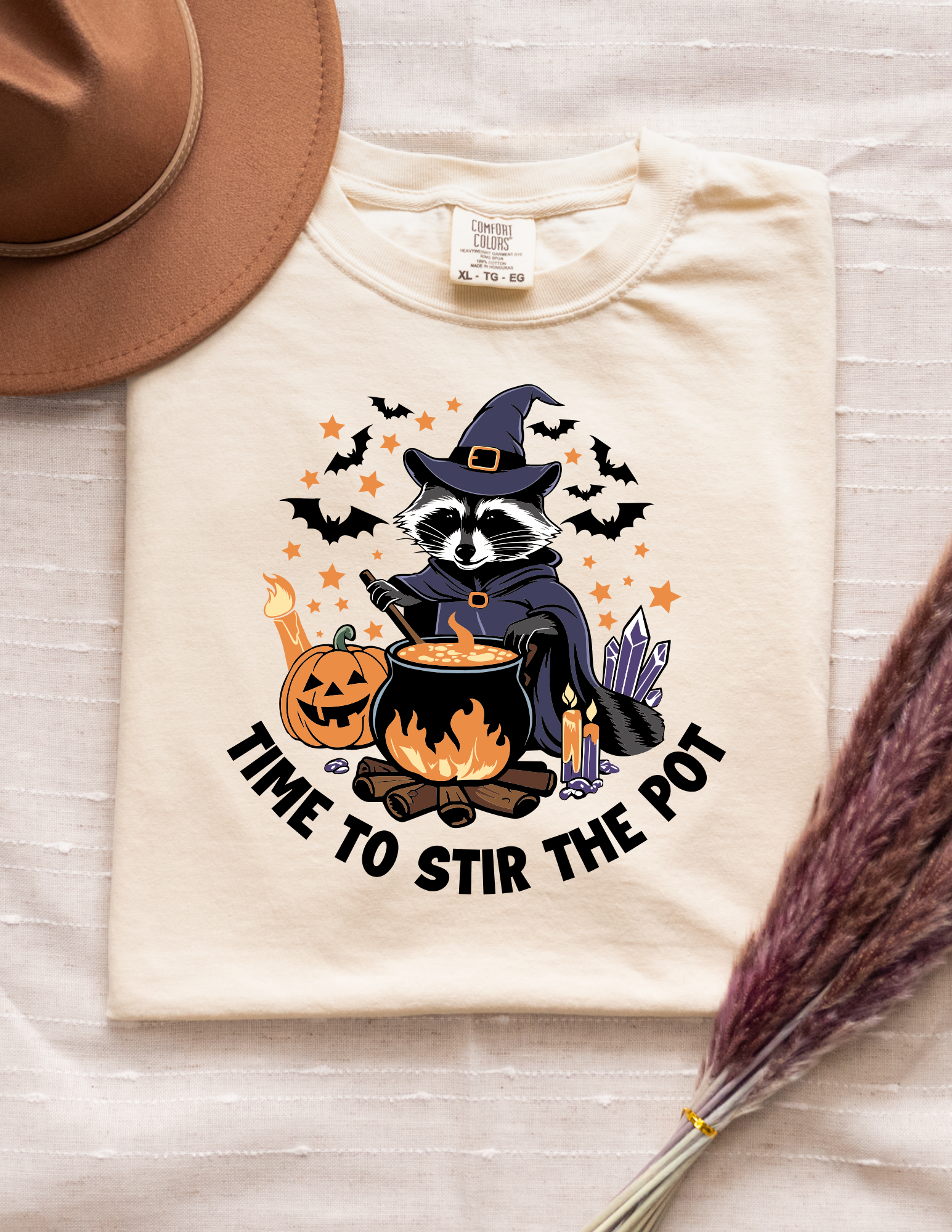 “Time to Stir the Pot” Graphic Tee – Witch Raccoon Halloween Shirt