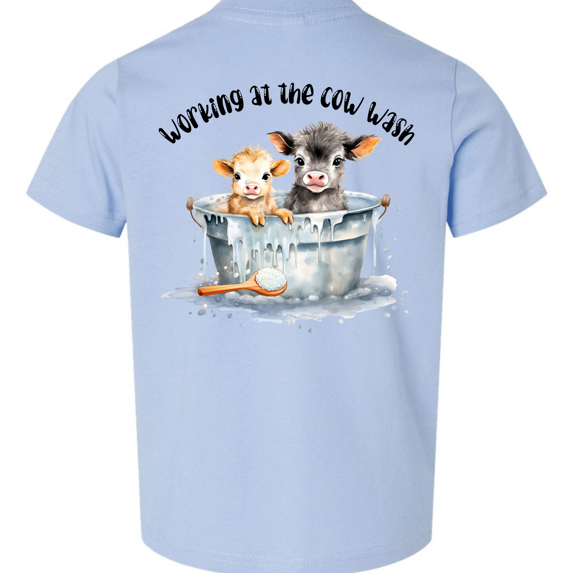 Our Working at the Cow Wash kids tee features two cute baby cows getting squeaky clean in a big ol’ bucket, surrounded by suds and giggles. Whether your little one loves animals, funny shirts, or just getting messy, this tee is a total moo-d.